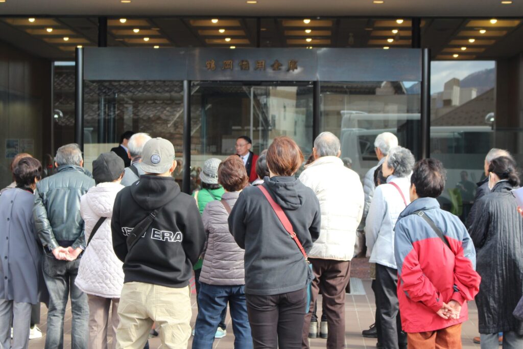【来庄された「宇和島信用金庫年金ツアー旅行団」の皆さまをお出迎えしました】