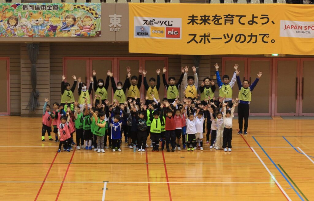 鶴岡信用金庫が協賛した「JFAキッズサッカーフェスティバル2025山形in鶴岡」が、令和7年11月29日(土)に「つるしんアリーナ小真木原」にて開催され、庄内各地からU-6クラス(幼稚園保育園年長)とU-8クラス(小学校1・2年生)の24チーム180名が参加しました。