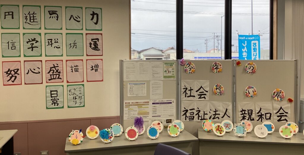 令和8年2月9日(月)より、当金庫東大町支店にて紙皿工作・書道作品のロビー展示を行っております。ぜひお立ち寄りください。